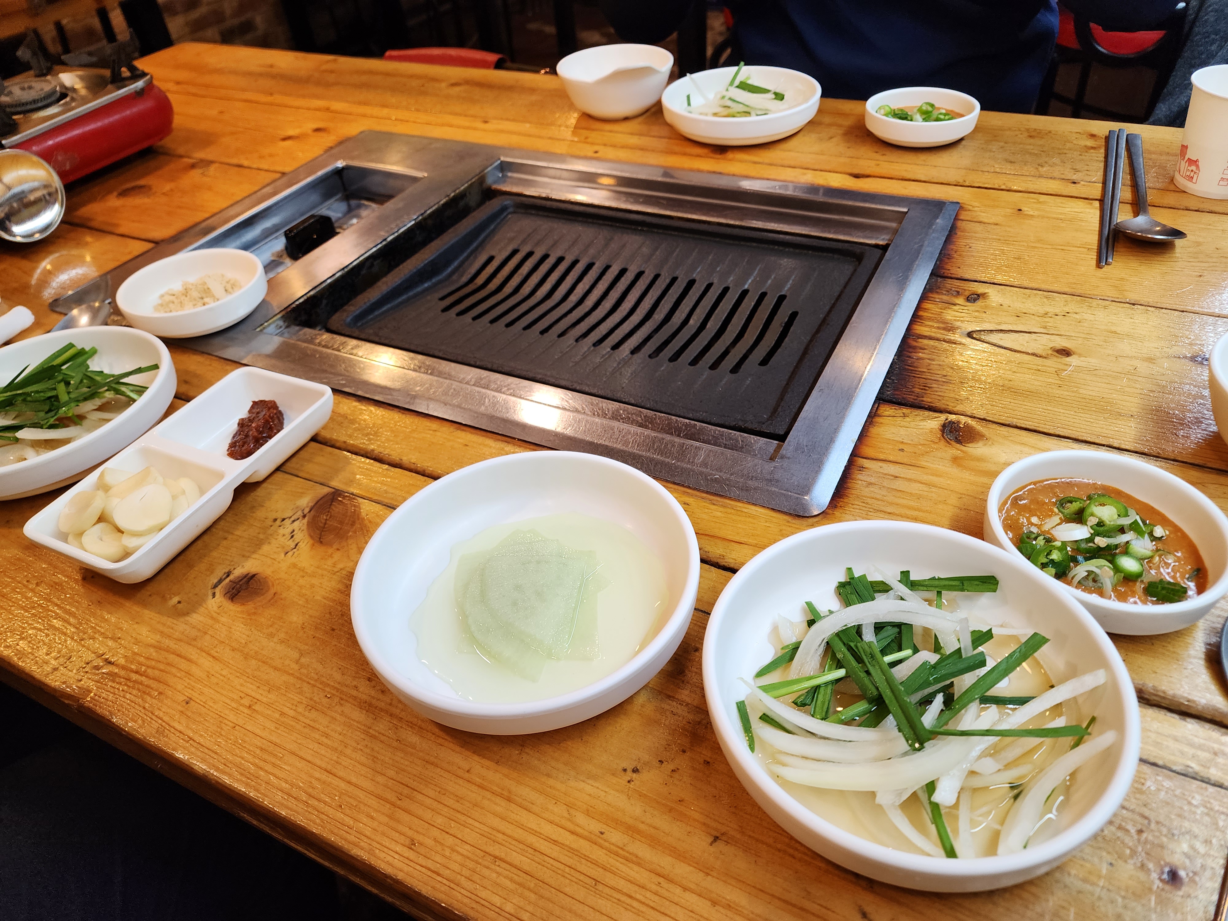 2. 각테이블마다 철판이 있길래 일본처럼 직접 거기다 구워주는줄 알았는데 테이블 철판은 워머 개념. 다 만들어진걸 철판에 올려놔준다. 음..